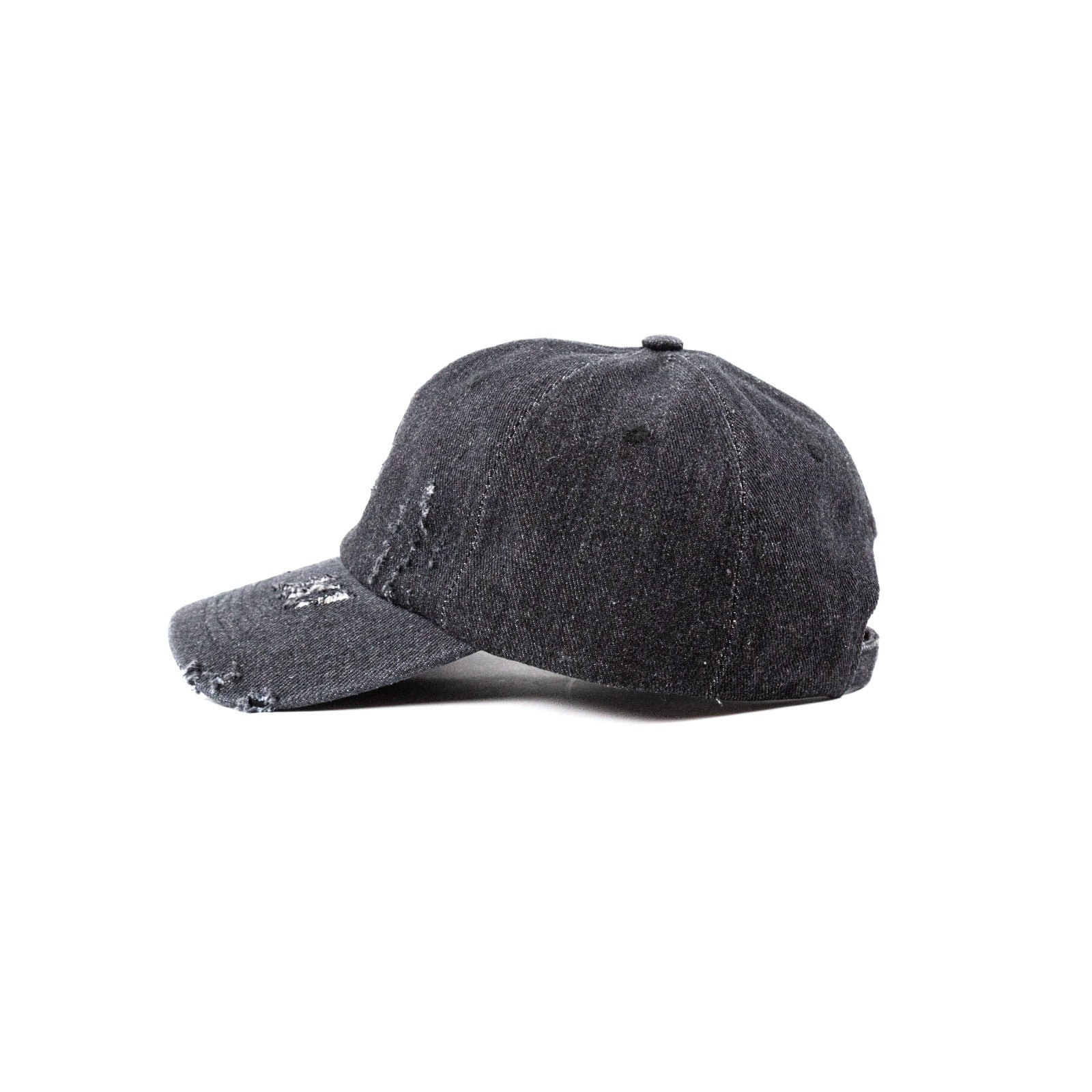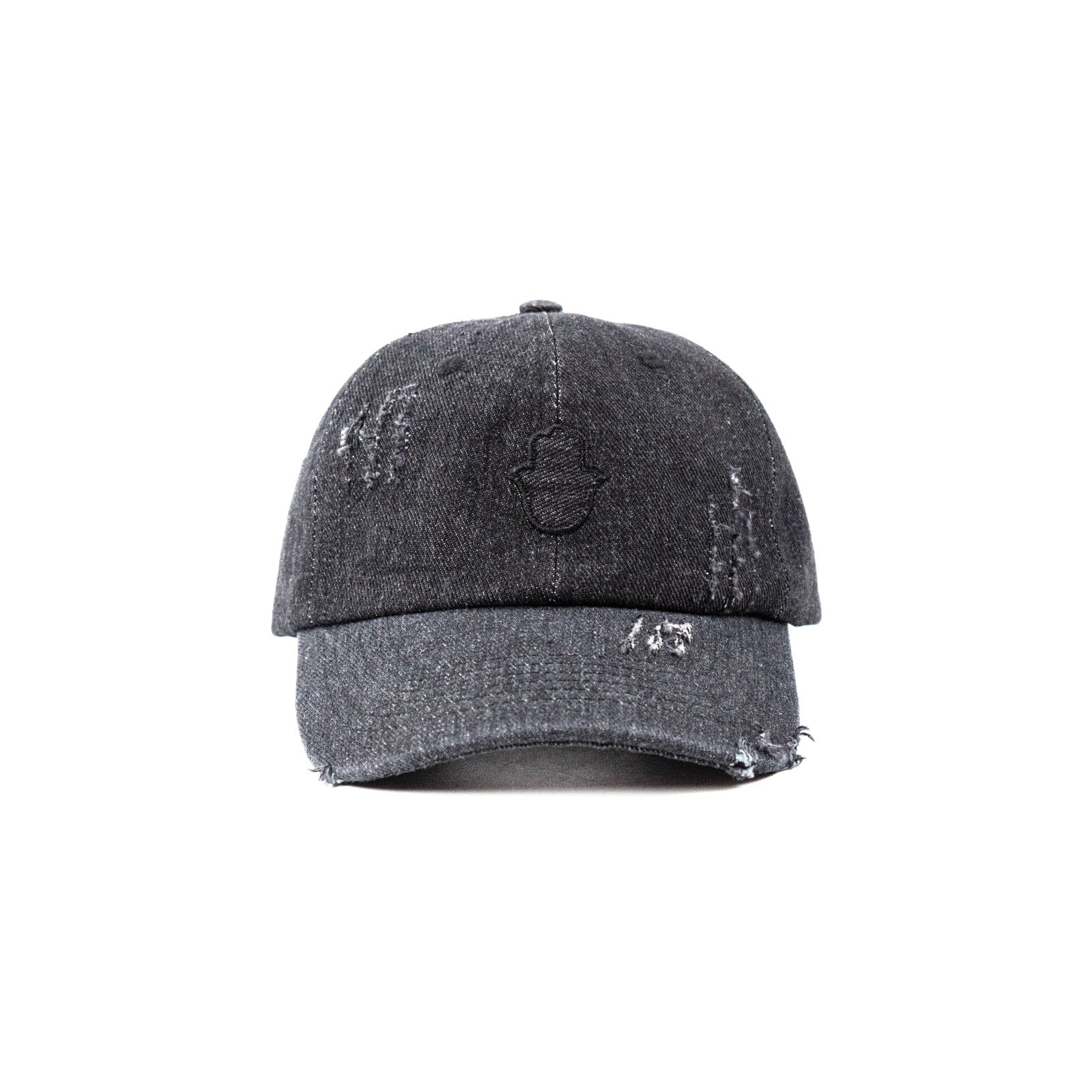 HAMSA BLACK DENIM DISTRESSED CAP UNISEX OSFA