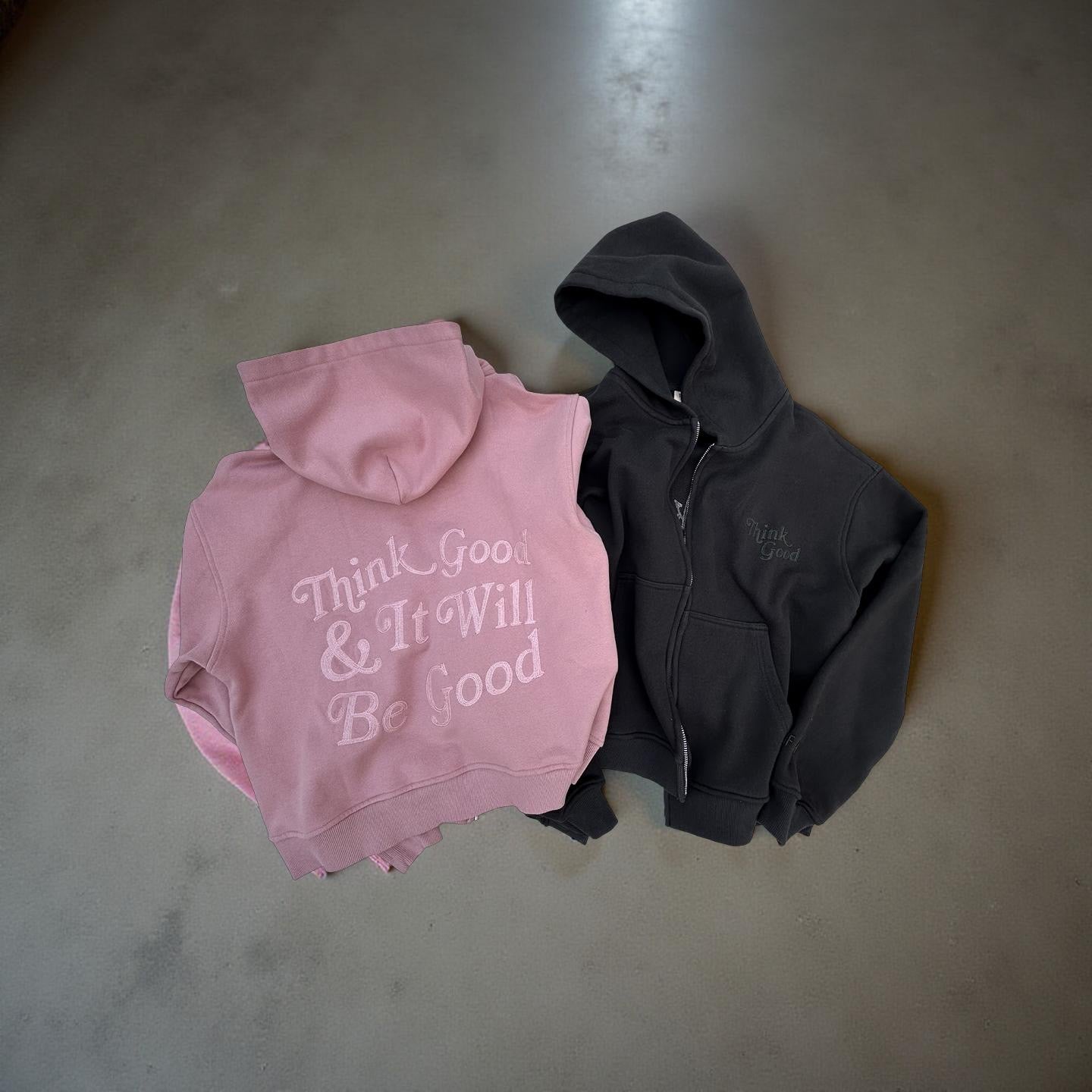 104 THINK GOOD OVERSIZED ZIPPER HOODIE PINK