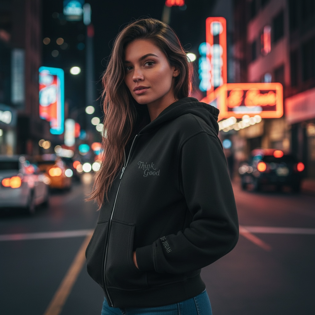 104 THINK GOOD OVERSIZED ZIPPER HOODIE HUNTER GREEN