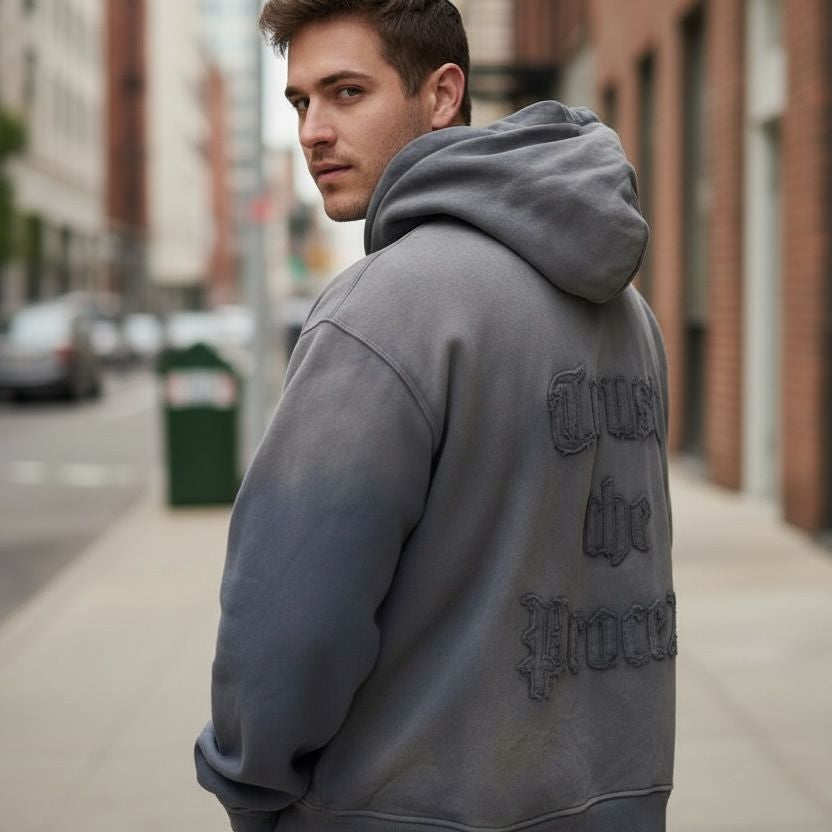 103 EMUNAH FIRST TRUST THE PROCESS SECOND OVERSIZED FADED HOODIE GREY